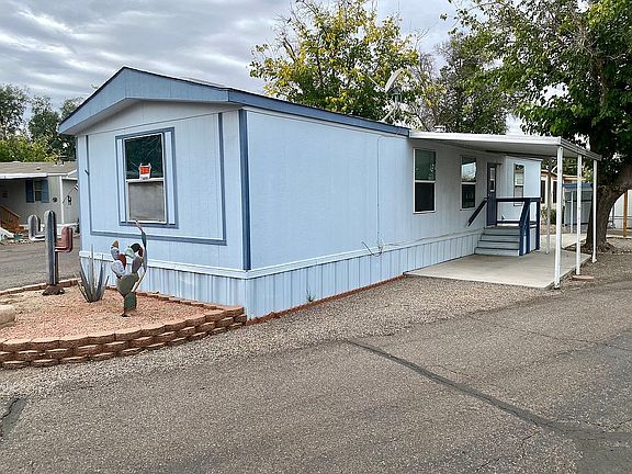 Lot #53 at palm drive trailer park. Very nice elderly community. Dogs allowed. Paved roads, cheap lot rent, close to roping arenas, quick hour drive to Phoenix. Blue collar small town giving it a nice, inviting environment. House includes car port, washer, dryer, microwave, 2 lift beds(one is a tempur petic), and a xxl electric lift chair. Chair was purchased last year for $7,000. Beds are only a year old. Fully handicap assessable. Ramp, walk in shower(remodeled this year), widened doors, and pull out drawers at wheel chair level for easy storage. Spacious layout allowing wheel chair access throughout house. Great winter get away or full time home. The market is hot and houses are going quick