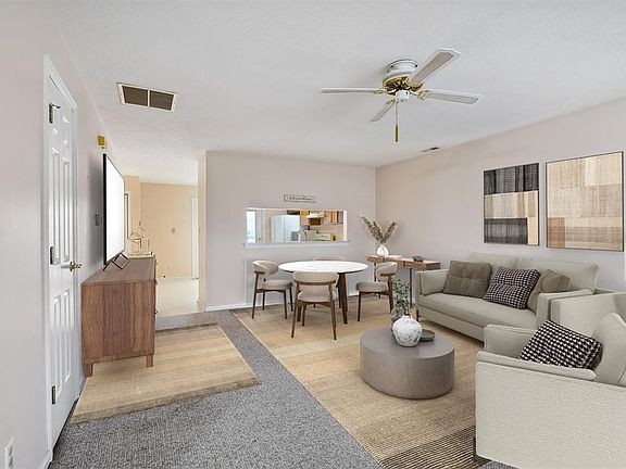 Wonderful affordable condo in a perfect Greenwood location. Super easy commute to downtown Indy. Close to shopping & restaurants in Greenwood. The outside has been freshly updated. The open concept great room welcomes you when you walk in the door. The kitchen is spacious with a service window to the great room dining area + room for a kitchen island. The half a bath is there for when you have guests. The large master bedroom features double closets. The 2nd bedroom could also double as a home office w/built-in shelves. Open patio in the back is just waiting for sipping coffee in the morning. NOT a 55+ community so it is perfect for a young professional or great place to retire. All outside maintenance is covered including mowing the yard!