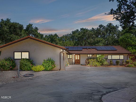 Welcome to your private 1.6-acre Oak-studded sanctuary, where tranquility meets endless potential, including the option for an ADU! This charming 3-bedroom, 2.25-bath home features a solid foundation, inviting you to personalize it to your taste.Inside, you'll find a unique Santa Maria-style BBQ, perfect for indoor grilling, and a cozy wood-burning fireplace enhanced with a pellet stove insert for warmth and ambiance. Enjoy the efficiency of electric radiant heat, powered by solar panels, and bask in natural light from dual-pane windows and multiple skylights throughout.Step outside to discover your personal oasis--a hot tub retreat nestled on a stunning redwood deck, ideal for relaxing under the stars. The attached garage is spacious and functional, featuring a large laundry/washroom with a convenient 1/4 bath and plenty of room for 2+ cars. A rear door offers easy access to the RV pad, complete with hookups for all your adventures.For the car enthusiast or hobbyist, a fantastic 1,600 sqft shop awaits, equipped with a car lift and an automatic roll-up door, making projects a breeze. The septic system was updated in September 2024, ensuring peace of mind for years to come.This property is a blank canvas, ready for you to transform it into your dream retreat. Don't miss the opportunity to make this serene escape your own!