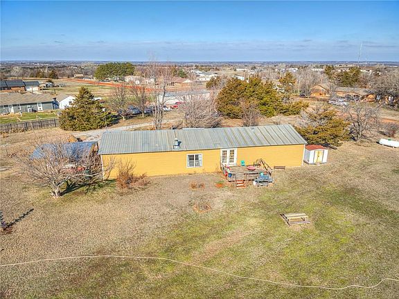 Country living and close to the city! This home has plenty of usable land on 2.5 acres! Manufactured home containing 4 beds, 2 baths, office, dining, and 2 living spaces. Large kitchen with beautiful stained redwood! Storage outbuilding and additional large barn with working electric! Lots of storage inside and outside this property to keep any of your toys! Spacious back patio deck overlooks the peaceful land. Generator to remain with property. Underground tornado shelter. Edmond schools. Come check out this opportunity to create your own oasis! Selling "as-is".