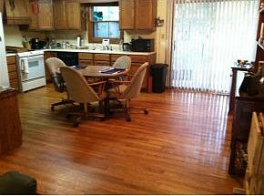 Flat LEVEL lot!! All usable with pretty shade trees & only one step into the house. FENCED Back Yard! (5ft.high w/3 gates) 2 Car OVER SIZED garage! Back patio & deck for outdoor living & an enclosed 6 person hot tub/spa area. Super nice HARDWOOD floors, just redone in this 3 bed/2 bath home. The wood stove provides options for heating. Kitchen Liv/Din are an OPEN design. Large master w/2 closets. This is a must see! Great for kids or retirees & first time home buyers. Priced to sell! Home has pride of ownership. Nice size lot too.
