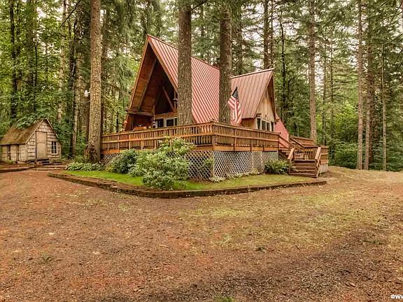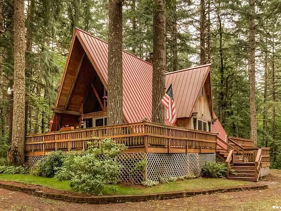Accepted Offer with Contingencies. Cabin in the woods! Darling A-Frame on five acres, just outside of Dallas. Two nice sized bedrooms, one of them in the loft with a 1/2 bath, full bath & second bedroom on main. Bright sunlight streams through the floor to ceiling windows. Cozy fireplace for chilly nights. Deck wraps around front & side. Laundry in basement. Forest with lots of wildlife.