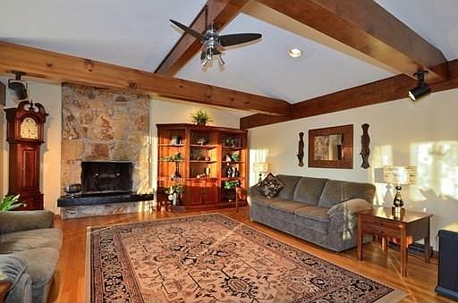 - Liv Dscrp: Fireplace, Flooring - Hardwood, Main Level, Ceiling - Cathedral, Ceiling - Beamed