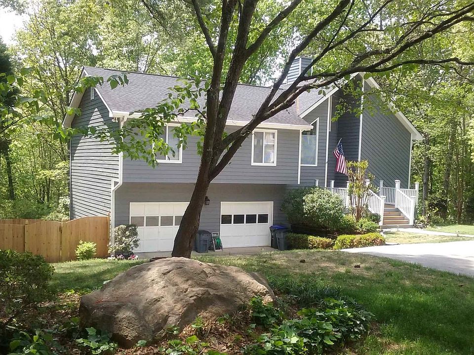 Tree top living! Private residence tucked nicely in a 3 home cul-de-sac. Architectural roof, new windows, doors, hardwood floors. Large kitchen with updated stainless steel appliances. Great room with cathedral ceilings and fireplace, formal dining room, master with garden tub. Oversized garage with workshop area. Fenced in courtyard.
