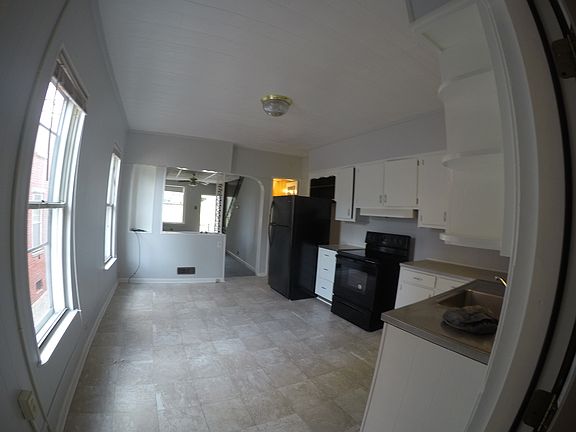 End unit with partial finished basement. Lots of finished wood in basement with a bar. Upstairs enjoy the large eat in kitchen, with mud room. Great room has decorative fireplace. Upstairs there are 2 private rooms with 1 walk thru. Large and newer bathroom. Fenced in back yard with small room for storage. Front porch to just sit and enjoy! New appliances, new paint, new floors. Move in condition! Following are approximate room sizes: MBR 11 X 10.5, Middle BR 12 X 8.5, Rear BR 11 X 6.5 with two cedar closets, BATH ROOM 9 X 5.5 LR 11.5 X 24.5, Kitchen 15.5 X 12, Mud Room 5 X 8, Basement 38 X 10