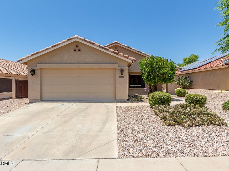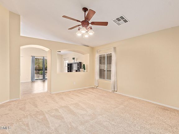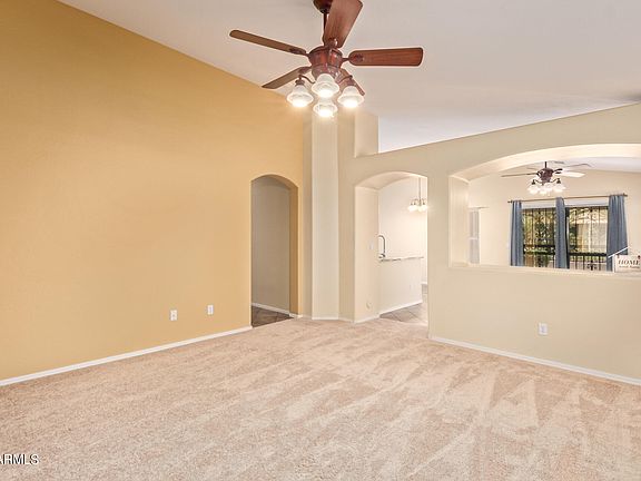 Move into this lovely single-level residence in the Adult Community of Sundance Village! Displaying a desert landscape, 2-car garage, and an RV gate. Turn-key interior boasts brand new carpet, vaulted ceilings, and a welcoming living room great for entertaining. The sizeable open floor plan showcases bountiful natural light. Arcadia doors open to the backyard which has a view fence overlooking a beautiful desert wash. The delightful kitchen includes track lighting, stainless appliances, and granite counters. The den can easily be converted to a 3rd bedroom. Oversized main retreat has a sitting area with bay window, a large walk-in closet, and a walk-in jetted tub. Relax under the covered patio in the perfectly sized backyard! Don't miss out!