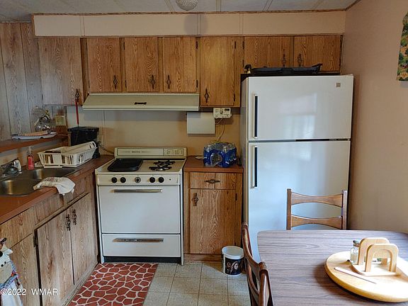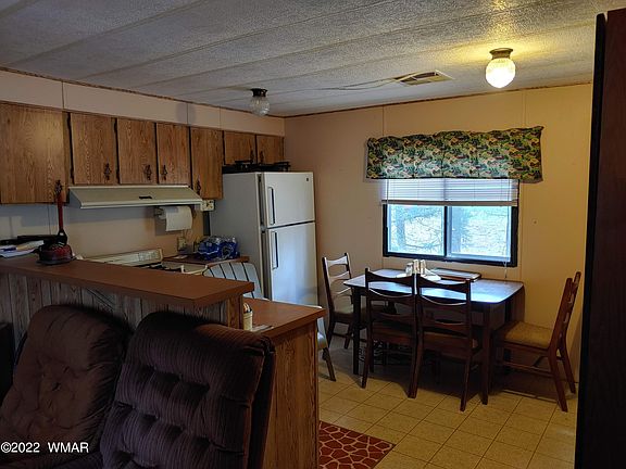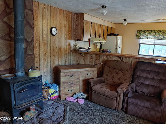 Affordable home on a .8 acre property with tall pines. This home, in the heart of Show Low, has covered front and back decks, 2 bedrooms, 1 bath, kitchen open to the living room, wood stove in the living room, full size side by side washer and dryer in the hall, a nice 10x10 shed out back for extra storage and City utilities. Convenient shopping. This property gives you several options: Seasonal get-a-way. move-in add your personal touches, remove the current home while using the foundation & utilities to install a newer manufactured home; or build a new home on the lot and use the current manufactured home as a place to live while doing so. Reasonable offers considered. Furnished Home being sold As-is.