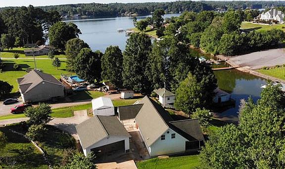 Lakefront home with over 1 acre of land. The long concrete drive carries you down to Oversized tall carport for 3+ vehicles. The seller has a barn/building by the drive the driveway for storage or a huge workshop. There is a pump to use lake water for watering the yard or car washing. Drive your boats directly into the covered boathouse. There is a cabana onshore that even has an interior room with a sink. Main level living with loads of natural light.Upstairs host a full bath and Bonus Room. You can also access the Bonus Room from the exterior side staircase. Sunroom to enjoy the lakefront property all year long. Low traffic on this no outlet street. Refrig, washer, & dryer remain. Gentle slope from the house to the water.