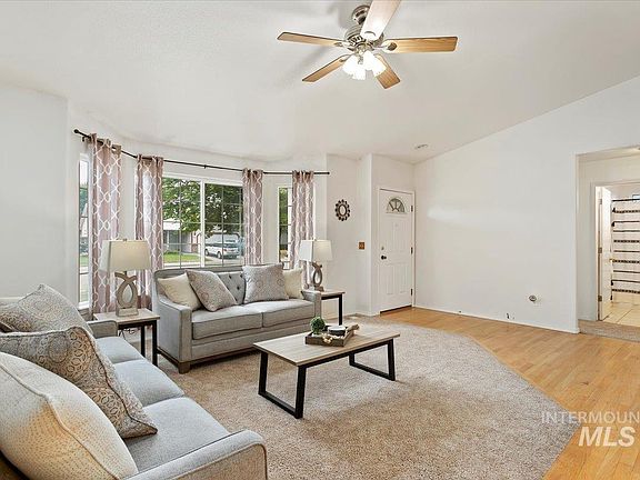 Perfectly set on a tree-shaded lot, this beauty feels like home the minute you pull up. Located in a desirable and established neighborhood, conveniently close to shops, dining, and 15 minutes to the Air Force Base or 10 minutes to downtown Mountain Home. The living room is warm and inviting with soaring ceilings and windows, great floorplan including open dining and living room. A spacious breakfast area looks out to the backyard and flows into the kitchen, where you’ll find a breakfast bar, Stainless Steel Range and a brand new SS dishwasher. The master bedroom is large with no lack of storage, including a separate walk-in closet and an additional closet. The spacious master bathroom with a double vanity and a bathtub & shower combo, make this entire room an owner’s retreat! Recent updates include: new gutters and new exterior trim paint. You’ll enjoy the back patio both morning and night, so bring your coffee and wine, and make this house your home. SELLER TO PROVIDE 1 YEAR HOME WARRANTY!