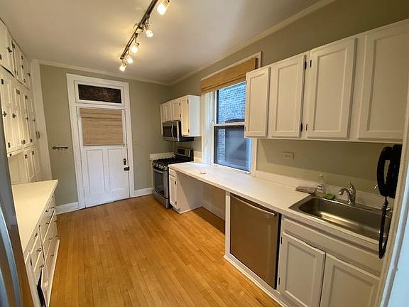 Gorgeous condo in one of Evanston's most beautiful courtyard buildings! Spacious, east facing unit flooded with light. Step into this lovely home through the gracious entry. The elegant living room features a wood-burning fireplace. Formal dining room. White wood kitchen with an abundance of cabinets reaching up to the ceiling, a reverse osmosis kitchen water filter and newer stainless steel appliances. Large bedrooms. 2 full bathrooms, with original sub-way tile in pristine condition. Wonderful vintage details, including hardwood floors, high ceilings, arched doorways, barrel-vaulted ceiling and crown molding. Heated garage space! Well-managed association. Amazing location for commuters and beach lovers: one block from the beach, short walk to Main Street shopping, dining and entertainment; also able to walk to both the Metra and the "L" trains. Walk or bike along lakefront to Northwestern University Evanston Campus. There is a 25 lbs. weight limit on the dog policy. Security deposit for the Pet.