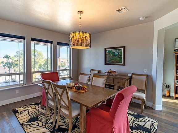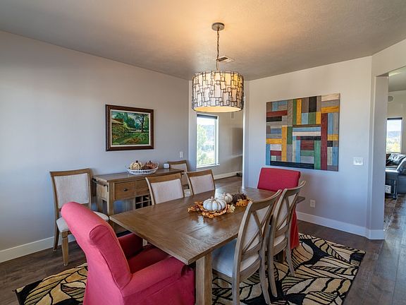 Breathtaking views of the Ruby Mountain Range overlooking the Spring Creek Marina, minutes from Lamoille Canyon. Custom built in 2017, designed energy efficient with south facing low E windows to minimize utility costs. Windows include double cell insulated energy saving black out blinds. Pellet stove upstairs, wood stove in the basement make the need for propane minimal. Kitchen range is gas top with electric oven and hood above, kitchen also includes microwave/wall oven, and over sized island. Spacious master bedroom with tray ceiling, accent lighting, access to back deck and space for beverage fridge. Master bathroom has double sinks with vanity area, large walk in shower and jetted tub. Oversized walk in closet with additional washer/dryer hook ups. Laundry room includes utility sink, countertop and additional cabinetry. Main level also has powder room for guests, formal dining room and additional walk in pantry. Full finished basement with access to the back yard, family room, 4 bedrooms and 2 jack & jill baths, dry kitchen and office area. Surround sound in great room and family room. House is smart home capable. 370 sf covered trex deck. Insulated 3 car garage with shelving.