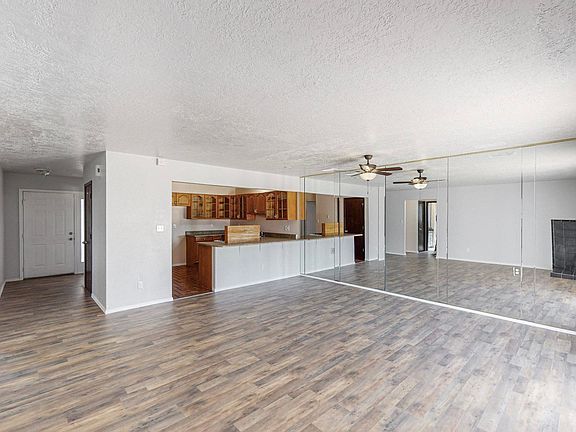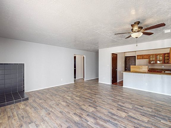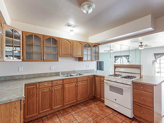 Immaculate home with beautiful cabinets. This was the model home for the area! Lovely mountain views. Brand new gas stove. Area set up for a fireplace or wood/pellet stove. Roof less than ten years old. New stucco paint, and new interior paint. No carpet. Flooring is laminate and tile. Vinyl windows. Eat-in bar. Shed in back. Large walled yard. Extra long garage. Great views of the balloons during the fiesta!