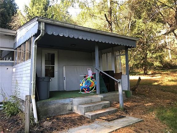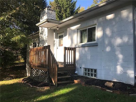 Solid block Ranch style home offers 2 bedrooms and 1 full bath plus extra toilet in lower level. Lots of parking and room to turn around. Large covered side porch. Entry here goes right into the eat-in kitchen with lots of cabinets and counter. The electric stove is included in the sale. Pergo wood flooring in the kitchen. Oversized living room has entry from the front door and also a side door with another smaller porch. Living room offers a fireplace. 2 bedrooms and a full bathroom all on the mail level. Basement measures 29x21 in size and can be used for any of your needs. 1 car integral garage. 1.58 acres of beautiful wooded property.