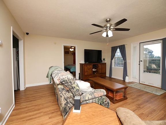 Nice 3 bedroom 2 bath home sitting on 2.69 acres. Property has a long concrete drive with home over looking the huge front yard with a small stream and shade trees. Home features a large living area with split bedroom plan. Nice size master bedroom and bath with jetted tub and separate shower. Kitchen has wood cabinets and dining area has access to the back decor grilling.Home has a new 30yr. roof and new paint in half the home. Nice outbuilding with concrete floor, electricity, and a loft for storage.