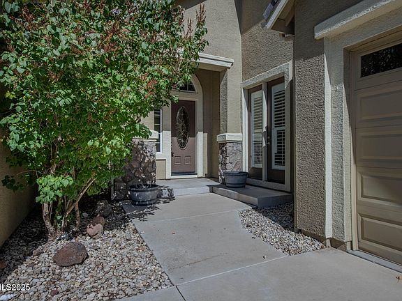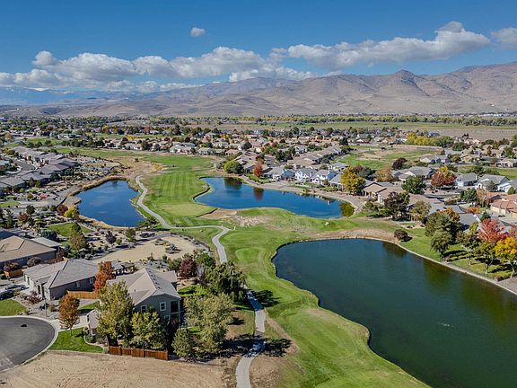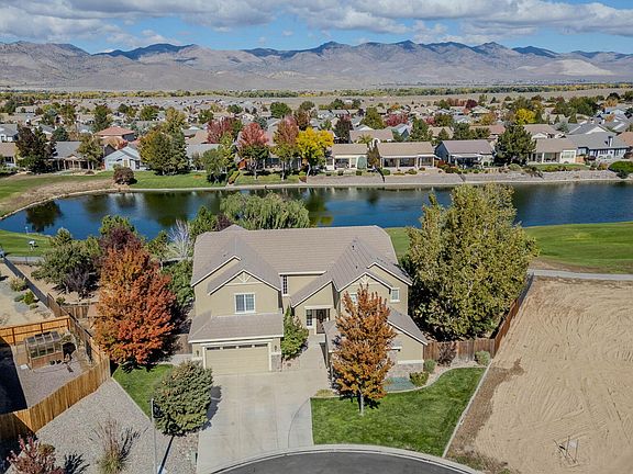 Matchless. Memorable. Magnificent. Tucked away on a quiet cul-de-sac along the golf course, this extraordinary home captures the best of Dayton Valley living—offering over 1/3 of acre of space, sweeping mountain, golf, and valley views, plus a floorplan designed for both comfort and style. With 3,615 square feet, 4 bedrooms, 3.5 baths, a separate office, and a huge bonus room, this home is truly one of a kind. From the moment you step through the front door, you'll feel the quality and care that define this well-built and meticulously maintained property. The formal living and dining rooms create an elegant first impression and open seamlessly to the kitchen and family room—perfect for entertaining or relaxing at home. To the right of the entry, you'll find the private office and a main-level bedroom and bath, offering flexible space for guests or multi-generational living. The heart of the home is the bright and open kitchen featuring abundant cabinetry, a walk-in pantry, kitchen island with breakfast bar, gas cooktop, wall oven, and microwave—all beautifully accented by striking quartz countertops. The adjoining family room is warm and inviting, with a gas fireplace and large windows that frame views of the landscaped backyard and golf course beyond. Upstairs, the spacious primary suite is a true retreat, complete with its own gas fireplace, a private deck overlooking the lake and fairway, and a luxurious bath with dual vanities, a garden tub, an oversized double shower, and a massive walk-in closet. Two additional bedrooms, a full bath, and a large bonus room complete the upper level—perfect for a media room, play area, or home gym. Recent upgrades include newer wood flooring throughout the living and dining areas, tile in the entry, kitchen, and baths, plus newer furnace and AC units for year-round comfort. The kitchen refrigerator, washer and dryer are all included. Outdoors, you'll enjoy mature landscaping, a hot tub, a separate side yard, a dog kennel area, and stunning golf course views that stretch toward the mountains. The 3-car garage provides ample room for vehicles, tools, and toys. Matchless in design and memorable in every detail, this is more than a home—it's the perfect blend of elegance, comfort, and timeless beauty in an unbeatable location.