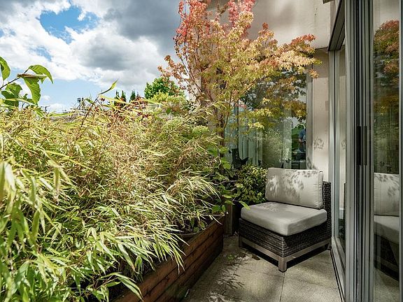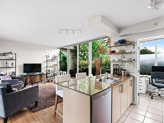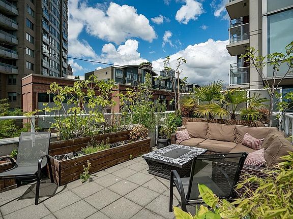 Welcome home to this stylish & bright garden facing Downtown Townhouse with a 538sf ROOFTOP DECK! Enter from the secure inner courtyard (not street level). This home features natural light from floor to ceiling windows on two sides and opens onto a secured rooftop garden area. The open-plan kitchen is perfect for foodies. The den/office can easily be used as a sleeping area. A Quality concrete building - you will never hear your neighbour, this Townhouse is move-in ready! Steps to the Skytrain, Seawall, Chinatown, Gastown, parks, Rogers Arena & BC Place! Includes parking. Open House this weekend Sat & Sun 2-4pm - Call to confirm open houses or a private showing.