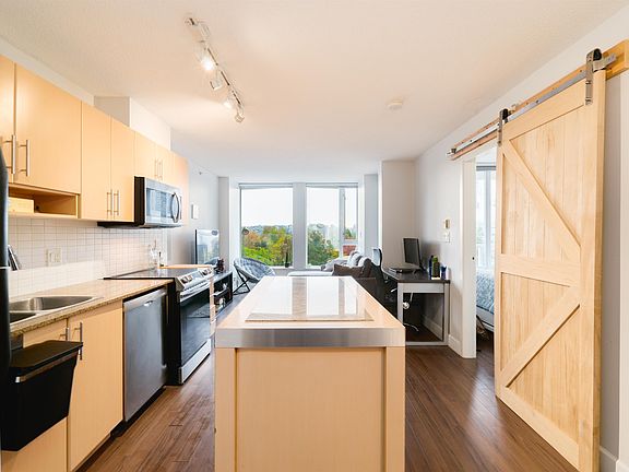 Welcome to The Taylor! This 1 bedroom + den unit is located perched above the trees, giving a beautiful wide open view of a mix of nature & the city. This well cared for home had a full stylish bathroom remodel in 2017. Enjoy every inch of the bedroom, as the size is maximized by the new built-in closet system and a sliding barn door. The custom kitchen island provides the perfect space for entertaining and there is extra storage from the custom floor-to-ceiling cabinets in the den. New dishwasher installed in 2018, as well as a new microwave and stove in 2021. 1 Parking and 1 Storage included. Pets and Rentals allowed with restrictions.
