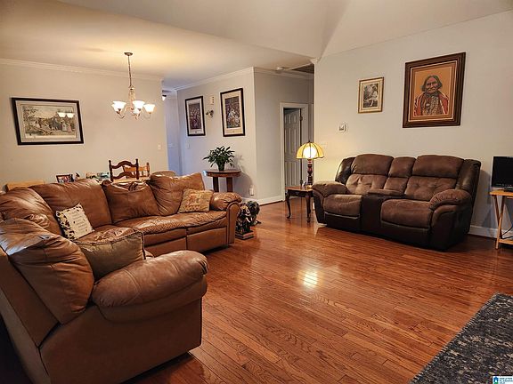 Schedule a private tour of this beauty in the highly sought after neighborhood of The Gardens, located in the heart of Springville!  Features include an open Living Room/formal Dining Room, kitchen with granite counters, pantry, all appliances convey. Relax in the primary bedroom with its large bathroom offering tile flooring, double bowl granite top vanity, soaker tub and separate shower. 2 additional bedrooms and a second full bath nearby. A bonus room offers a place for an office, den, or craft room.  Enjoy coffee or entertaining on the screened patio. Privacy fenced backyard. Storage building remains. Irrigation system in the front yard. The community pool is a perfect place to cool off in the summer. Streetlights and sidewalks offer a safe and convenient morning or evening walk.  Shopping and dining in downtown Springville are just minutes away and access to I-59 is a breeze. ROOF 2019, HVAC 2016. Dishwasher 2025.  New stove to convey, buyer to intall.