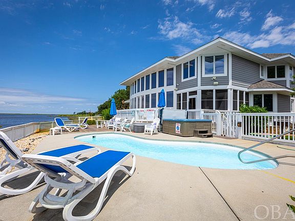 Welcome to 550 Trumpeter Swan Court, a premier waterfront listing located in the renowned Currituck Club Resort Community of Corolla, NC, situated on a sprawling bulkheaded lot on the Currituck Sound. Coastal comfort and elegance engulf you the moment you enter this two story estate with a grand foyer entry leading to the living room with floor to ceiling windows encompassing the panoramic views of the water, hardwood floors, and a gas fireplace for gathering amongst family and friends. In addition to 4,200 square feet of total living space, 6 beds, 6 baths, 2 powder rooms, and a two-car attached garage, this home boasts breathtaking views from the first and second floors, a gourmet kitchen with dual stainless steel appliances, a walk-in pantry, quartzite countertops, and a gas cook top. A second level Billiards room offers a pool table and kitchenette with beverage refrigerator, and ample seating to soak up the view. Kids can enjoy the overflow game space with air hockey and ping pong located in the garage. Unique features set this home apart from 6 private en suites, a walk-in closet, soaking tub, custom-tiled showers, and a rare location on a true soundfront parcel in the club. The immaculate grounds found at "Three Swans" invites you to enjoy time spent by the private pool, spa, or enjoying a meal at the exterior dining table on the gracious decks overlooking the water. Enjoy a book in the shade on the chaise loungers or relax on the screened porch with an afternoon cocktail. Serving as a second home and vacation rental, enjoy the convenience of a strong rental season booked for 2024 and a turn-key ready property with recent updates to include a new roof, upgraded kitchen and appliances, a new double front door, rear and side decking, spa, and irrigation pump. Take advantage of this private gated community filled with amenities for all ages from in-season trolley service to and from the beach and amenities, outdoor community pools, tennis, playground, year-round health club, and an 18-hole golf course at an additional fee.