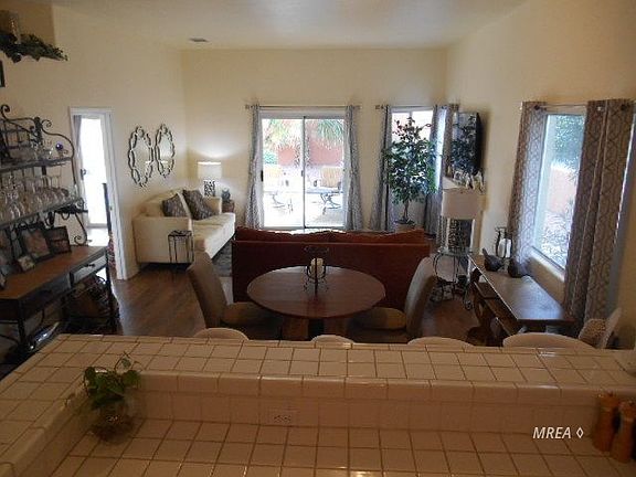 438 SF garage for two cars + personal property. A large rear COVERED patio that faces east on the rear portion of your .12 acre lot. FLOORING, tile in the kitchen and high end PERGO in all other rooms. Two closets in master, 2 full baths both with high rise toilets, a propane fireplace. Refrigerator, range, dishwasher, reverse osmosis system, water softener, washer/dryer included, along with drapes in great room and master bedroom. PLUS a WIFI thermostat that works with your smart phone. Green belt across the street and convenient location without I-15 or major road noise. All of the facilities of the Mesquite Vistas Sports Club, swimming pool/hot tub, tennis/pickle ball courts, basket ball court, exercise room, and snack & beverage stand open most of the year are available to the owner and guests of this property, Plus the in ground pool and hot tub in the Canyons gated area.