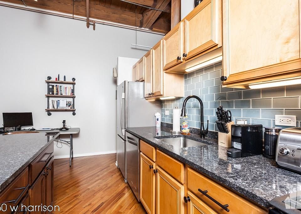 Stunning West Loop Timber Loft 1 Bedroom Features - 14 ft timber ceilings, beautiful kitchen with granite countertops, stainless steel appliances, and a large island. Hardwood floors throughout living space. Amazing bathroom with a large shower and vanity. Huge floor to ceiling windows allowing for a ton of natural sunlight, fireplace, exposed brick. In unit laundry and private balcony. Off-street, uncovered, gated parking additional $150 and must be rented with the unit. Located just steps from buses and the blue line, union station and tons of great restaurants, bars and shops. On-site bike storage and fitness area. Available furnished. 1 Month free!
