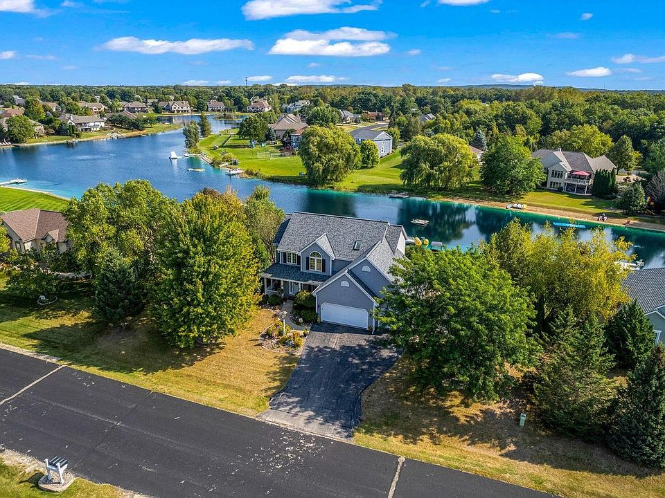 Beautiful home in The Pines subdivision. Premier location with over 130' water frontage. Lots of living areas for the whole family with a walk out basement. Large 2 level deck and patio with built in hot tub. The 3 car garage has a car lift for extra room for your toys.Schedule your showing before it's too late.