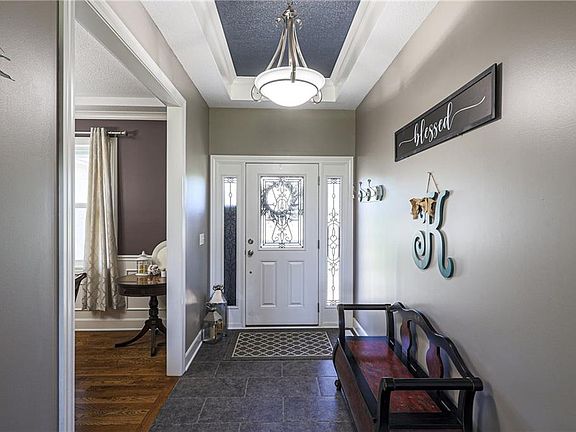 Back on market at no fault to seller- Come buy before it's too late!! Step into a remarkable 5-bedroom home on 1 acre in Grain Valley, where every detail caters to comfortable and spacious living. The house features a large open floor plan, a standout kitchen with a sizeable island, double ovens, and a walk-in pantry, complemented by a formal dining room. The expansive living room, warmed by a wood-burning fireplace, creates a cozy and inviting atmosphere. The master suite is a retreat in itself, featuring a whirlpool tub, walk-in shower, and a vast closet, strategically positioned away from the other two main-floor bedrooms for privacy. Two additional bedrooms come with dual walk-in closets and Jack and Jill bathrooms of equal size, eliminating morning squabbles among kids.