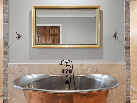 **ELEVATOR INCLUDED AND DEP & USACOE DOCK PERMITS IN PLACE** Featuring over 6,300 sq. ft., this impressive waterfront estate is a highlight of the exclusive Bonefish Pointe within Bay Point in Panama City Beach, FL. and MUST be seen in person to be appreciated. An incredible remodel was just completed in 2022 by a builder from the Washington D.C. area who pulled out all the stops. Starting outside, the outdoor living space is incredible. Boasting incredible lighting, impressive deck space, multiple fire pits and seating areas, an amazing pool and hot tub, bar and plenty of covered area, you can easily host gatherings of 300 people or more..all while overlooking the stunning, expansive water views. Inside, enjoy these same phenomenal views from almost every room. Beautiful travertine floors highlight the gorgeous, large formal living and dining rooms. The primary suite is secluded on the first floor for privacy and boasts a large soaking tub and separate shower in the bath with plenty of space throughout. Enjoy a game of pool or sip a cocktail at the bar in the second floor recreation area...an impressive space overlooking the first floor with access to the second floor balcony. After relaxing here, take a few steps down to the 12-person theater to take in your favorite movie and a bowl of popcorn. The third floor features a bonus room that could be an office, exercise room or bedroom...again with wonderful views of the water. Back on the first floor, you will find everything you need in the massive kitchen including a prep area, wine cellar, wine fridge, expansive island and more. Park four vehicles and a golf cart in the garage and easily fit 10 vehicles or more in the driveway. **New Roof in 2018, New A/C units, the pool has been redone with a new pool heater and a new pump installed. The exterior of home has been re-stucco-ed with new gutters, new railings, new pavers and all new landscaping. The house has all new custom lighting throughout the house and all new hardwood flooring on the 2nd and 3rd floor** Rental projections attached. Make an appointment today to view this awesome estate.