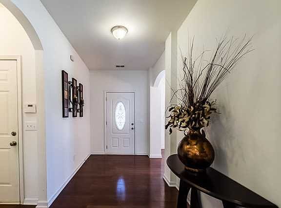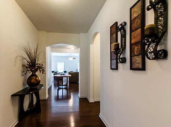 Lots of beautiful space. Hardwood floor in foyer, formal dining room, great room and eat-in. The kitchen has tile floors, granite counter tops, bar, stainless steel appliances and lots of cabinets. High ceiling in great room w/lots of natural light. Lg Master BR and MA featuring elegant vanities, separate tub & shower upstairs has a large loft & 2 BR's. The back of the house has a covered porch & well maintained backyard. Neighborhood has a pool & lake to enjoy.