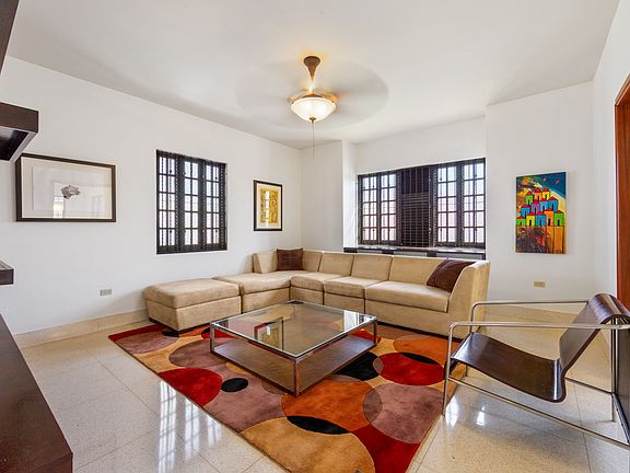 Available fully furnished and completely equipped, this elegant Spanish Colonial home is located on one of Miramar's most exclusive and residential streets. The home sits on a corner lot within the historic zone and offers approximately 4,500 square feet of living space across two levels, with six bedrooms and four and a half bathrooms. Recently remodeled, the home blends original charm arched iron doors, terracotta details, and timeless architecture with modern upgrades like a designer kitchen, inverter A/C systems (5-ton capacity), and updated bathrooms. The outdoor space includes a covered terrace with a custom bar, lounge area, and a private plunge pool surrounded by lush greenery and decorative tilework. Rent includes weekly cleaning service and full maintenance of the pool, garden, generator, cistern, and A/C systems. The home also features a full-power generator, water cistern, and covered garage for four vehicles. Pets are allowed. This is a rare opportunity to enjoy a turn-key living experience in the heart of historic Miramar, just minutes from Condado and the best of San Juan.