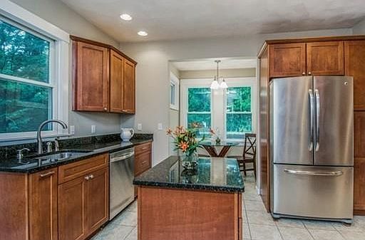 Fabulous colonial home with such amazing quality and New England character. Top of the line kitchen, and a great location for commuting with privacy as well. Minutes to 93! Modern kitchen w Stainless steel appliances and granite countertops and high quality cabinets with lots of storage. Have coffee in the morning at the breakfast nook that is surrounded by windows. Great light throughout, French doors, year round sunroom and circular driveway, framed by beautiful trees. Private lot, completely level in the back and comes with an outdoor fireplace! This home has so much to offer, from the architecture to the high end kitchen and bathroom. New windows, just refinished floors that sparkle and freshly painted exterior and interior. Great floor plan with upstairs bedrooms that have beautiful natural light. Entertain and Enjoy dinners in the dining room that looks straight out of a magazine. This home is MOVE-IN condition and an incredible value! Come to the open house and be amazed!