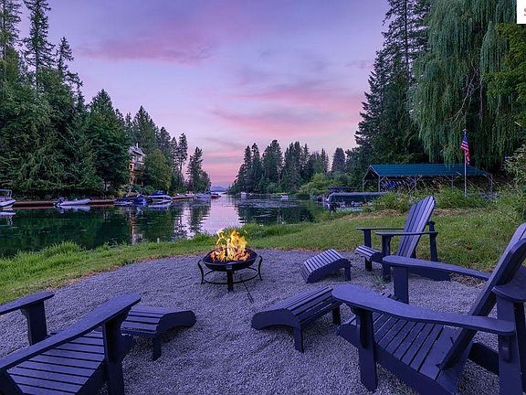 Unique opportunity to own TWO homes with 95’ of waterfront in a protective cove with private dock. Only 5 miles to downtown Sandpoint and 4 miles to the Schweitzer park and ride. This remodeled property features 4 total bedrooms and 4 full bathrooms with fantastic south facing mountain and lake Pend Oreille views! The main house is 3 bedrooms and 3 bathroom and was recently updated with a main floor master suite, walk in tile shower, quartz double vanity, tile floors, and rain shower head. The new light and bright gourmet kitchen features stainless steel appliances, quartz counter tops& full height tile backsplash. The open concept floor plan features new wood floors, a gas fireplace with wood beams & shiplap accents. The secondary bathrooms have all been redone with lots of updated tile and quartz vanities. Outside you’ll find the wrap around deck & oversized patio look directly south down the channel to the long view of the lake & mountains. The property sits on a large .73 acre lot with large trees and mature landscaping with a paved path you can easily access the dock. The Boyer Slough provides protection for your boat, water toys, and lets you enjoy calm waters when the lake is full of weather and boat traffic. The newer ADU is a 1 bedroom/1 bath and 2 car heated garage with private apartment above. The ADU features wood floors, tall ceilings, gas fireplace & its own kitchen and dining. There are also 2 RV hookups on the site with lots of off street parking. With no CC&R’s or HOA the current owner has a permit for short term rentals. The perfect location for two homes this close to town, the lake, and ski mountain make it a one of a kind!