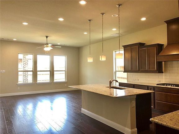 STUNNING ALMOST NEW HOME in VENTANA! Nestled on a corner lot, This 4 bedroom, 3 bath beauty features wood flooring, split bedrooms and oversized granite island opening to living and formal dining area. Kitchen features large pantry, gas cook top and built-in microwave. Nice fenced yard with covered patio. Yard & HOA Dues included in rent. Home is in Benbrook ISD.
