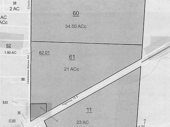Sale comprises 3 parcels of property, lots 60, 61, and 11 as shown on the attached plat for a total of 78.5 acres, more or less. Lot 11 is zoned C-1, and lots 60 and 61 are zoned FAR. 48 Acres, more or less, are leased for farming and in row crops through the end of the year, but the lease can be bought out. Property being sold for development. Five miles from Ford Tennessee Truck Plant. Railroad access nearby. GIS maps not accurate. 16 acres south of Hwy 70, 62.5 acres on the north side.