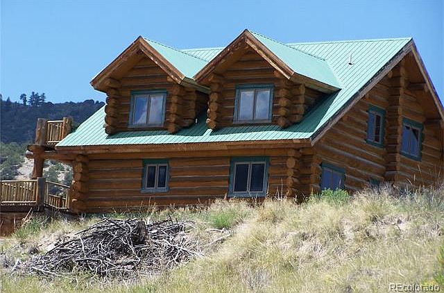 Large log mountain home with 6 bedrooms and 3 bathrooms. Open floor plan on main level with kitchen and living area and 2 bedrooms and bathroom. Attractive sun room and decking. Upper level has sitting area, office, 2 bedrooms that could be opened into one large suite and bathroom. Decking outside is southerly facing from bedroom or office. Lower level has large living area or game room plus 2 bedrooms and bathroom, utilities, and laundry. Fabulous views of the mountains and valley floor. Exclusive area with county road access to private driveway. Close to Government land with excellent hunting and hiking by year round stream. Well priced at $531,800.