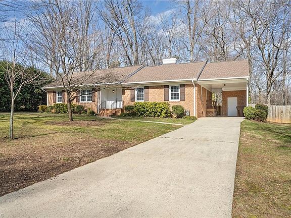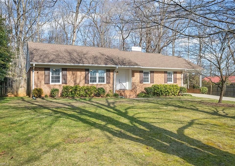 Welcome Home to this Amazing Brick Ranch Located in the Dolley Madison Homes Area of Guilford College! Such a Superb Location. Located on a Quiet Street so Close to Everything from Shopping to Restaurants to Highways/Interstates! 4 Bedroom/2 Bathroom One Level Living Home w/Hardwoods Throughout! Large Primary Suite w/Primary Bathroom w/Walk In Shower Plus 3 Additional Bedrooms w/Hall Bath w/Tub/Shower Combo! 4th Bedroom Could Also be Used as a Den w/pass thru Door to Kitchen and Sunroom! Great Spacious Updated Kitchen w/Granite Countertops, SS Appliances & a Tile Backsplash w/Eat In Breakfast Room Area! Light Filled Sunroom Overlooks the Rear Yard & Patio Area Plus Storage Building which Remains. Extra Storage Space Closet in Covered One Car Carport too! Updated Electrical Panels in 2023, Newer Roof & HVAC--unsure as to the exact age but believed to be within the past 10 years. Furnishings Available for Sale Too! All Kitchen Appliances to Remain Incl. Refrigerator & Washer & Dryer!