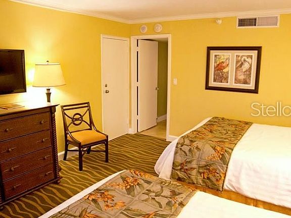 This 535 sq. ft. 1 bedroom suite with 2 queen beds has an additional room with a double-size fully furnished sofa bed and sitting area. Enjoy breathtaking views of the Gulf with up close side Water Views complete with a spacious balcony, .. This suite offers an exceptional price value. - Excellent total turn-key rental income from the first class management rental program is already in place. Stay up to 28 days a year. Existing rental management agreement with the Tradewinds resort transfers to buyer. The Tradewinds offers over 1000' of Sandy Gulf-Front Beach on over 30 acres that will have you will feel as though you are in a Tropical Paradise. Seven pools, 13 food and beverage outlets, water slides, water activities, fitness facilities and tennis courts are just a few of the very many amenities. The Tradewinds has a long established track record with hosting many weddings and conventions. What an opportunity. . This resort offers it all ! .