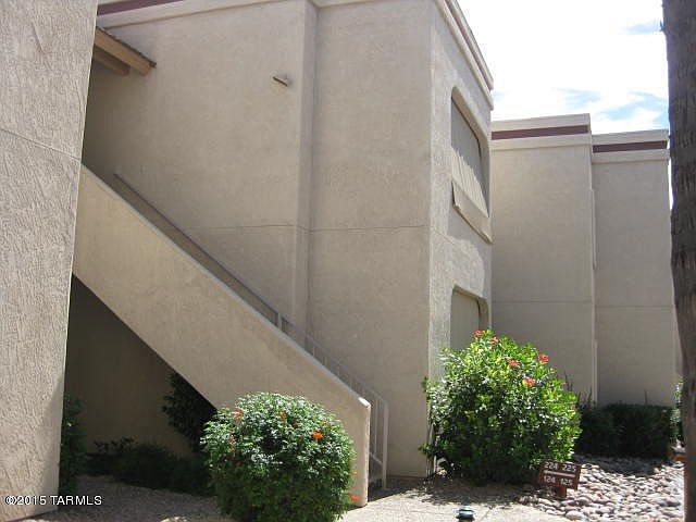 Sunrise Springs 2 bedroom 1 bath condo with private covered patio overlooking community fountain. This unit features a living room, dinning area, kitchen w/all appliances, washer and dryer & front patio. Within walking distance to shopping malls, plazas, restaurant, easy route to UofA, malls, parks, golf, Sabino Canyon, bike routes and more. HOA fees include, fire, garbage, water, sewer, pest control, gated community, pool and more. Enjoy your own condo with covered parking in the highly desired Catalina Foothills. Home is sold "as-is".
