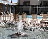 This condo was owned and decorated originally by an L.A. based interior designer w exquisite taste! The condo was once written up for the local paper! He called in many favors to do things the best! The new owner updated the kitchen, bath & second bedroom. Bathroom freshly painted, very calming. Updated by current owner who has also traveled the world and redone many homes. Asian style bedroom and bathroom ( new black square sink on counter), new silver tone accessories in bathroom, Views of mountains from the two bedrooms. Stream runs through complex, fountain outside your door. Southwest/American Indian extra bedroom/office. Mirrored walls in the condo make place seem even more spacious! Most furniture and artwork can be sold separately for turnkey acquisition. There is a lovely little patio with rocking chairs/southwest decorations/room for drinks & snacks. Views of palm trees from the porch. Unit has a secure privacy screen for porch as well as front door and bedroom windows. Washer/dryer in laundry closet included in sale. Stove was new when owner purchased. Now new fridge & dishwasher. The kitchen has been updated with oak upper cabinets, new southwest design silver pulls and knobs and painted lower cabinets and new silver tone faucet and soap dispenser. New stove, dishwasher & fridge. New countertops (composition, stone-like)>