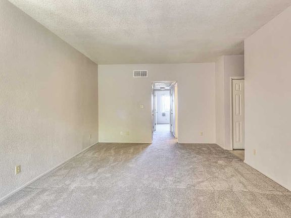 Step over your tranquil stream with bridge to your front door and into your spacious living room with galley kitchen. Fresh paint, updated lighting in kitchen/dining area and brand new plush carpet with pad throughout. Stackable laundry in closet for convenience. Enjoy your oversize soaking tub/shower in master and two very large bedrooms with plenty of closet space.