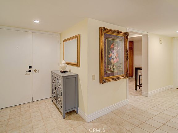 Beautiful highly upgraded two-bedroom, two-bath EL MIRADOR floorplan in the popular Laguna Woods senior community. Double doors open to a small entry foyer and the common rooms beyond. Two elegant pillars stand at the entry to the enormous living room which easily accommodates your largest furnishings. These unique architectural features create a sense of greater definition between the living and dining areas. A gorgeous custom chandelier graces the dining room. The kitchen features granite countertops, stainless steel appliances, newer cabinets and space for a bistro breakfast table. French doors in the living room open to reveal a large sun room that has been enclosed with glass sliders and added carpeting. (Estimated square footage of sunroom has been included in livable square footage calculation). This multi-purpose space can serve as an exercise room, reading room, arts and crafts workshop, game room, additional dining space or any number of other uses. Enjoy a lovely view of countless trees and an expansive greenbelt from the enclosed sun room as well as the living room. Heating/cooling wall units have been added to both the living room and primary bedroom. The upgraded primary bathroom features walk-in jacuzzi tub. Additional features throughout the residence include smooth ceilings, recessed lighting, 5.5" wood baseboards, plantation shutters and dual-pane windows. Tray ceilings have been added in the kitchen and both bathrooms. The common laundry room is just a few steps away. Convenient elevator access from your assigned parking space in the subterranean level to unit 1B on the first floor. The large parking space accommodates one vehicle plus a golf cart and contains several large storage cabinets. There is also a large rec room at the subterranean level available for exclusive use by the building’s occupants. Do not miss this gorgeous home!