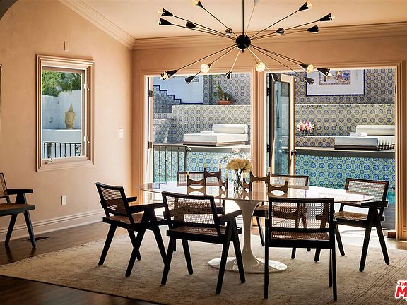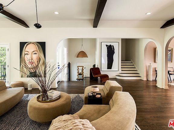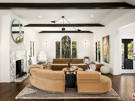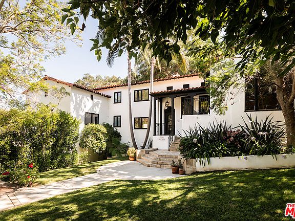 Nestled in Los Feliz' sought-after "Oak Streets," this reimagined 4-bed, 5-bath Contemporary Spanish estate seamlessly blends historic charm with modern luxury. From the gated drive and lush landscaping to arched windows and exposed beams, every detail feels curated and inviting. Perfectly positioned between Beachwood Canyon and Los Feliz, the home offers rare dual access ideal for those who love the Eastside's character yet want the convenience of an easy connection to Hollywood and beyond. The sunlit living and dining rooms flow into a soaring double-height family room, while the chef's kitchen overlooks a stunning oversized mosaic-tiled pool. Designed for entertaining, the backyard features a pergola lounge with fireplace, outdoor kitchen, and spa all framed by views of Griffith Observatory in total privacy. Upstairs, the primary suite offers dual walk-in closets, a spa-like bath, and a private fireplace. Three additional bedrooms provide easy access to updated bathrooms, custom built-ins, and flexible spaces for family, guests, or a home office. Offered fully furnished, this residence invites you to embrace elevated living where classic design meets modern convenience, just minutes from Griffith Park trails, the Trails Cafe, and the best of Los Feliz.