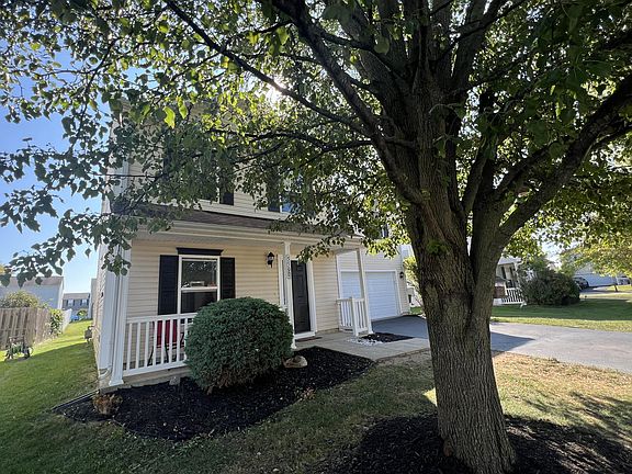 This 2 story home w covered porch area has an open concept floorpan and offers a living room with a cozy gas fireplace and is open to the eat in kitchen w tile backsplash. the backdoo leads to the very large back yard. First floor laundry and powder room offer lots of convenience. Upstairs you will a large loft that could be used as a second tv area, office, or playroom and 2 large secondary bedrooms, one w a walk in closet as well as a hall bath. The spacious owners suite will accommodate most furniture and also has a private bath and a huge walk in closet. This location is just seconds from 33, as well as restaurants, grocery, dining, and entertainment. Home is being sold as is.