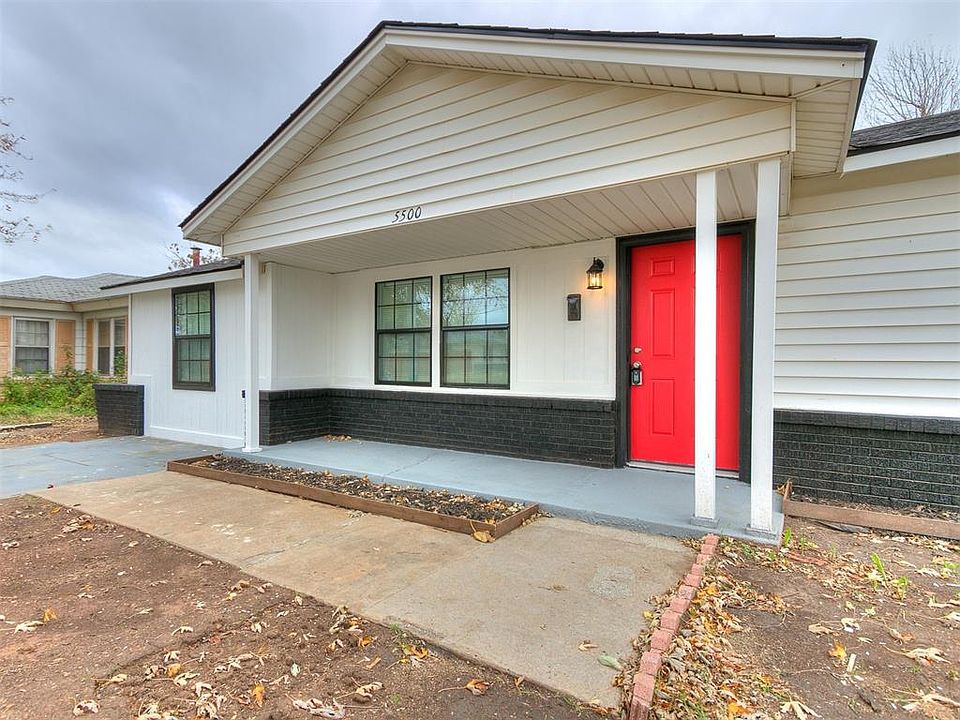 Welcome Home! Take a look at this 3bed/1bath beautifully remodeled house! Enter into a Spacious and inviting Living area that opens up to a gorgeous Kitchen that includes: New bottom cabinets, Stainless steel dishwasher and stove, Modern tile for the backsplash, and Quartz countertops! This property has a split floorplan perfect for that privacy you may desire. On one side of the property are two bedrooms and a Stunning fully updated bath with quartz countertops and gorgeous tile! The third bedroom is right off the living area and it has a large walk-in closet with lots of space for all storage needs. Also, the laundry room is close by and inside the comfort of your home! This home has so many updates: fresh paint, luxury vinyl plank, hardware, energy-efficient led lighting, a New roof, New energy-efficient window, New HVAC system, NEW upgraded electrical panel! Dont forget to check the huge backyard with several storage sheds! This home is conveniently located minutes from 2-40 and I-35/I-44!