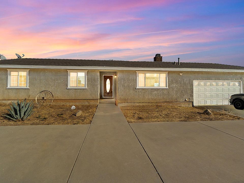 Welcome to your dream retreat! This stunning property, set on 2.57 acres, offers the perfect blend of comfort and functionality. The 1,477 sq. ft. home features 3 spacious bedrooms and 2 bathrooms, including a guest bath with a convenient tub-shower combo. The family room is a cozy haven with a charming fireplace and brick hearth, perfect for relaxing evenings. The galley kitchen is both efficient and stylish, providing a delightful space for culinary adventures. Step outside to discover a private, fenced pool area with a fixed patio cover, ideal for entertaining or enjoying serene moments by the water. Equestrian enthusiasts will appreciate the ample room for horses, making this property a true haven for animal lovers. The gated entrance ensures privacy and security, adding to the allure of this exceptional home. For those in need of workspace or storage, the all-steel construction shop is a standout feature. Measuring 30x50 and offering 1,500 sq. ft., it includes two 10x9 foot doors, a separate electric meter, and wiring for both 220 and 110 volts, making it versatile for various needs. This property is a rare find, offering a harmonious blend of indoor comfort and outdoor possibilities. Don't miss the chance to make it your own!