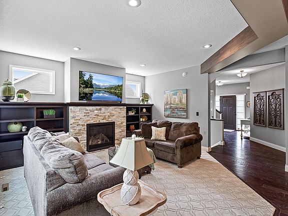 This stunning 5BR/4BA home with a heated 4 stall garage is an entertainers dream! The open main floor features a massive gourmet kitchen, living room, office and a sun room leading to a private fenced backyard that boasts a custom firepit, concrete patio and a hybrid (partially in-ground) heated saltwater pool! (Radient brand pool professionally installed by Performance Pools and Spa - Summer 2022) 4 bedrooms and the laundry are upstairs. The master bedroom includes a gorgeous custom tile walk-in shower and massive walk-in closet! Downstairs you'll find a theater room, exercise area, 5th bedroom, 3/4 bath and abundant storage. Come check it out today!