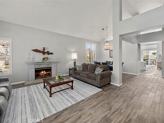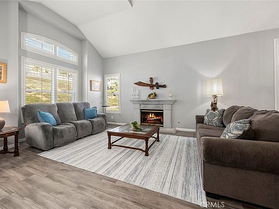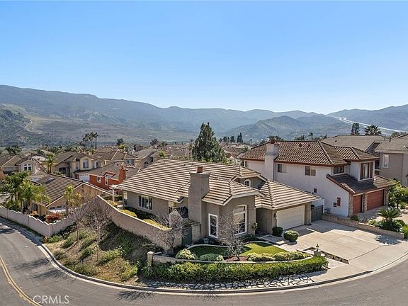 This immaculate, coveted single-story home with gorgeous mountain & canyon views, offers an open and fantastic floor plan with 3 bedrooms, 2 bathrooms and over 1,900 SQFT of living space! From the moment you enter the home, you can feel pride of ownership, how light, bright and clean the property is. The formal Living Room is open, has a vaulted ceiling, plantation shutters and a fireplace. Connected is the Formal Dining Room also open, with a vaulted ceiling and a pretty chandelier. Walking further into the home, is the open Kitchen with custom cabinetry, a new faucet, stainless steel appliances, a professional grade Thermador 4-burner gas stove, Thermador dishwasher, a microwave, large Quartz countertop with seating, a high ceiling and recessed lighting. The Kitchen opens to the spacious Family Room, which shares the same high ceilings, has a ceiling fan and recessed lighting. The secondary bedrooms are a good-size, have vinyl flooring and vaulted ceilings, ceiling fans and one has an organizational closet unit. The main, full, house bathroom has been recently and tastefully renovated with Quartz countertops, a new shower, tub, vanity and gold accents. The primary bedroom has a mountain view, vaulted ceilings, a ceiling fan and a sliding glass door with access to the backyard. The en suite bathroom shares the same mountain view, has porcelain tiles, also recently and beautifully renovated, has dual sinks, a pretty soaking tub and a separate walk-in shower and a walk-in closet. The backyard is well kept, tidy and low maintenance, has a flagstone covered patio that ties nicely into the flagstone steps at the front of the property, has room for patio furniture, table and chairs and BBQ with a natural gas hook up for spa or BBQ. This is where you will find the best views on the property! Newer porcelain flooring in the main areas of the home and primary bathroom. With smaller, gated RV parking, neutral paint colors, nice finishes throughout, an inside laundry room, 2-car garage with epoxy, overhead storage with pull down ladder, upgraded electrical 240-volt outlets, this home offers so very much! On a corner lot and with great curb appeal, walking distance to Bryant Ranch Park and hiking trails, this home is located in the Del Palazzo tract in Bryant Ranch and was built in 1994. Single loaded street with no homes across the way. Second homeowners and no HOA. Every inch of this home has been cared for and the pictures speak for themselves – Welcome Home!