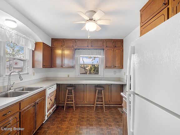 Situated just steps from Louisville's historic Iroquois Park, this adorable home has been well loved and well maintained. The arched doorways, original hardwood floors and covered front porch add loads of charm and character. With 2 bedrooms, 1 bath and the laundry all located on the same floor, this home is ideal for someone looking for single story living. The kitchen overlooks the picture perfect backyard and offers ample cabinet space.The large deck provides a peaceful space to relax and enjoy the shaded back yard. There is also a 1.5 car detached garage in the rear of the home as well as a separate shed providing abundant storage. The covered front porch