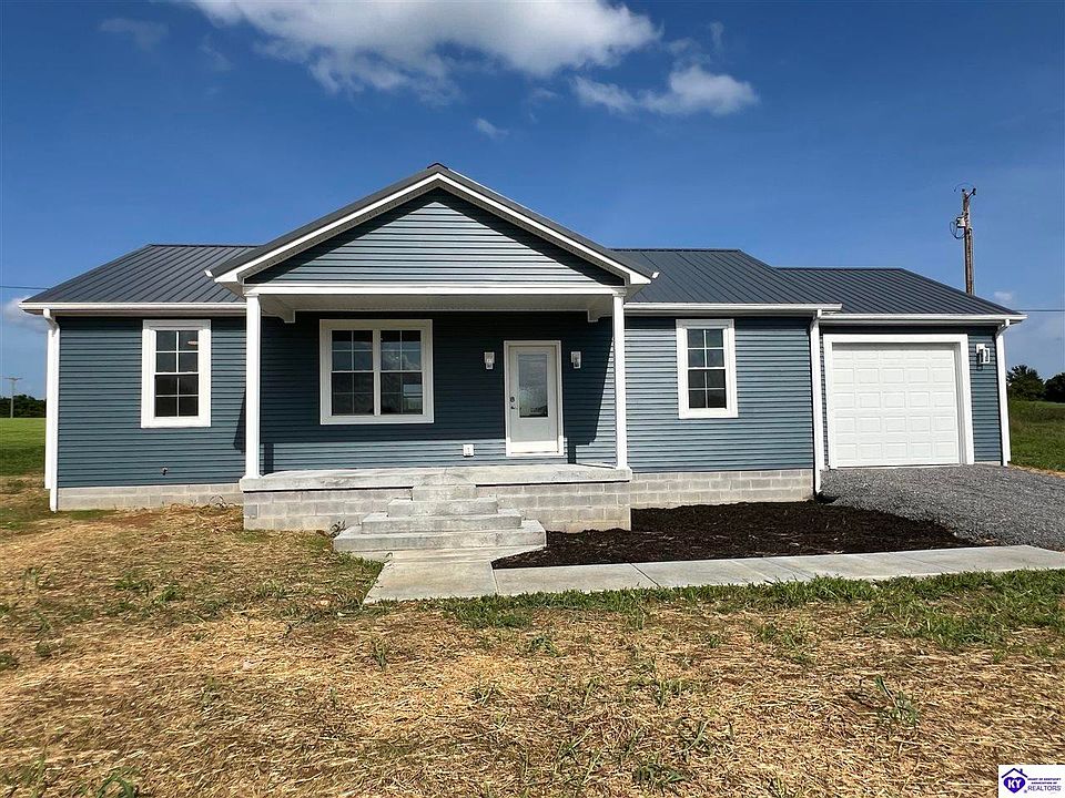 SELLER INCENTIVE-$4,000 toward buyer closing costs. Looking for a peaceful escape in the countryside with modern touches and plenty of room to stretch out? This brand-new home on 1.5 acres offers the perfect balance of luxury and rural living, designed for those who appreciate elevated features and serene surroundings. Step inside this charming 3-bedroom, 2-bathroom home and experience the warmth and spaciousness it has to offer. The open-concept layout is perfect for both relaxing and entertaining, with gorgeous black kitchen appliances and a sleek granite countertop. You’ll love cooking in this stylish kitchen, where functionality meets beauty. Each of the bedrooms is flooded with natural light from tall windows, creating a bright and airy atmosphere. The 9-foot ceilings give the home an expansive feel, while ceiling fans and additional lighting ensure comfort year-round. The durable, waterproof Pergo Timbercraft laminate wood flooring is not only practical but also enhances the tranquil aesthetic throughout the home. Designed with a split floor plan, privacy is key. The primary suite includes a walk-in closet, and the other bedrooms offer room for guests, or a home office. Outside, you’ll find a front covered porch and a rear deck – both the perfect spots to enjoy country views, whether you’re sipping your morning coffee at sunrise or winding down at sunset. Bonus Features: Keyless Entry: Convenient and secure, allowing you to enter your home with ease and MyQ Access: Control your garage door from your phone for added peace of mind. This home is ready for you with elevated finishes and thoughtful details throughout, this charming property is ready to be your next home. Contact us today to schedule your personal viewing!