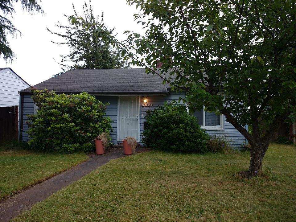 Cute as a button Cape Code style home sited on corner lot w/ picket fence. Inviting living room w/ hardwood floors, corner built-ins, vinyl windows & fireplace. Spacious kitchen opens to dining/family area perfect for casual living and entertainment. French doors open to secluded sunny rear yard. Private master bedroom w/ 3/4 bath. Oversized detached 1 car garage plus carport. Fresh paint, newer carpet, updated windows. Excellent location close to library, parks, & transit center.